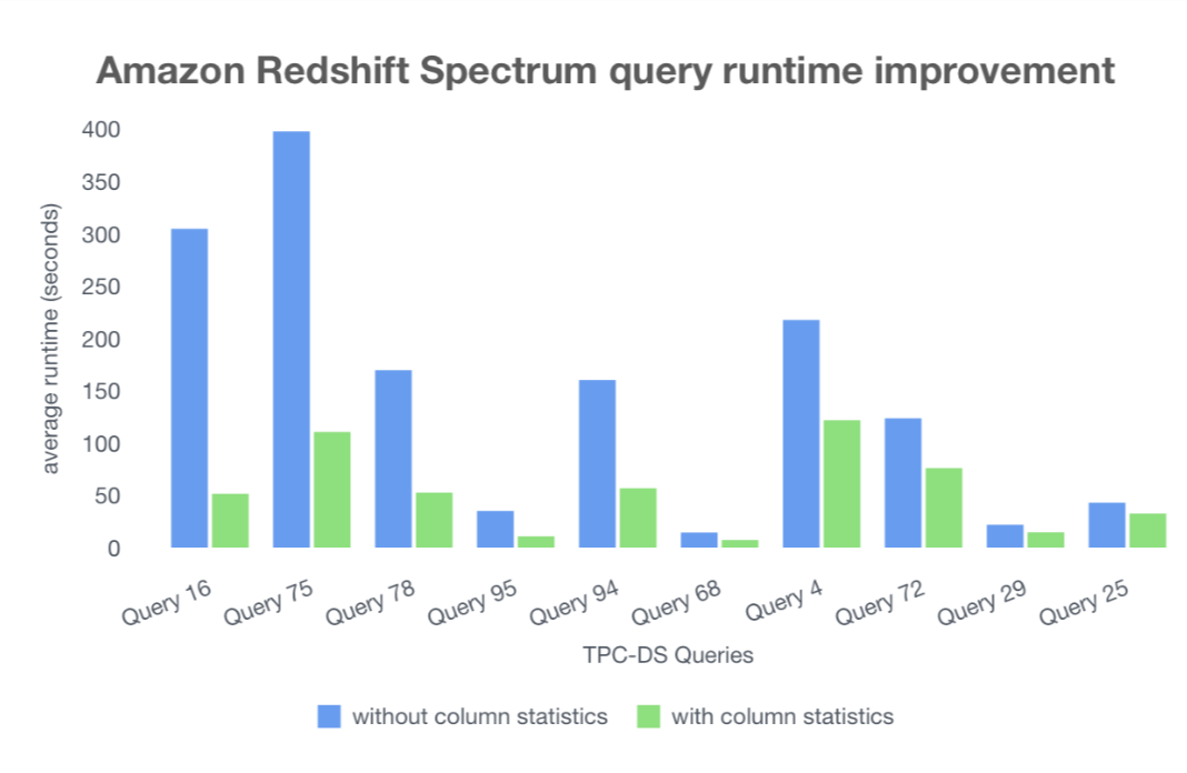 この記事では、Iceberg テーブルのカラムレベル統計情報が Redshift Spectrum と Amazon Athena でどのように機能するかを説明します。さらに、TPC-DS データセットを使用して Iceberg カラム統計情報のパフォーマンス上のメリットを紹介します。