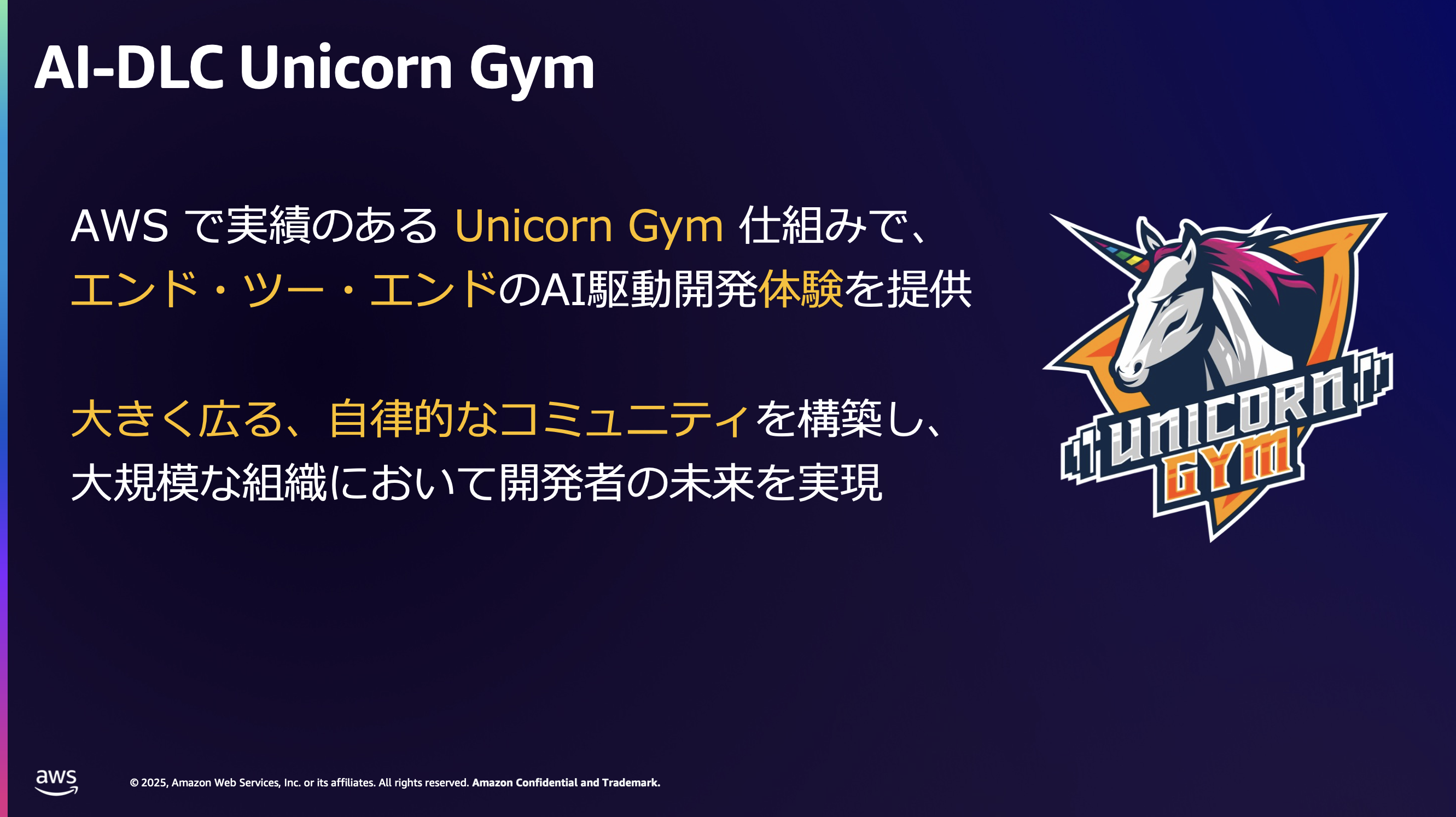 AI-DLC Unicorn Gym 実施内容の詳細はブログ「既存開発フローに AI-DLCを適用する 」と「AWS 発「AI-DLC」ワークショップレポート!現場に適用するには? 」も併せてご覧ください。