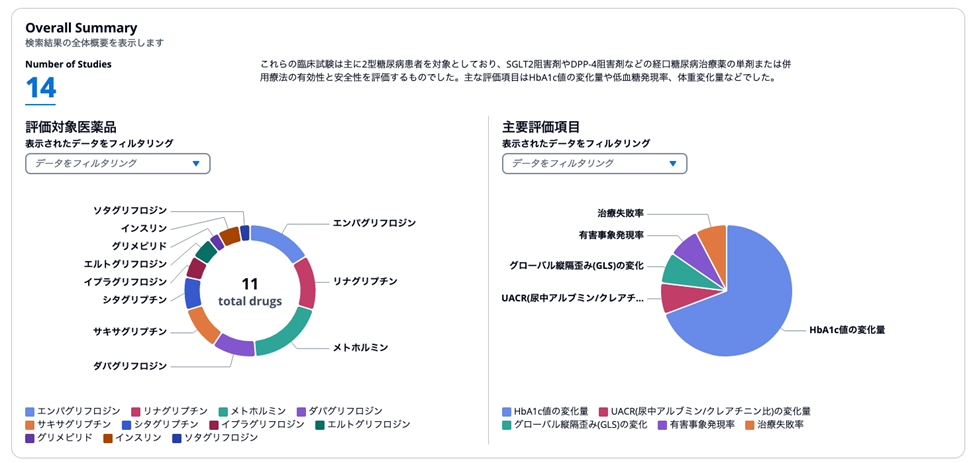 人間による判断を補完する形で、エビデンスに基づいた試験デザインの検討が可能です。また、生成されたプロトコールは規制要件との整合性も確認されます。