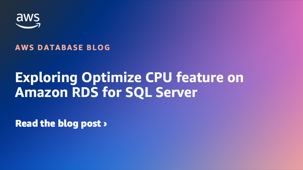 この投稿では、Amazon RDS for SQL Server の CPU 最適化機能を使用して vCPU 割り当てをカスタマイズし、特定のワークロードのコストを削減し、パフォーマンスを最適化する方法を説明します。CPU リソースを微調整することで、アプリケーションが必要とするパフォーマンスを維持しながら、より良いコスト最適化を実現できます。