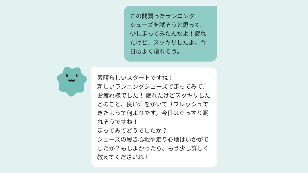 日々の歩数や活動量、睡眠データ、毎日の会話を自動で記録し、ダッシュボードで分かりやすく可視化します。歩数の目標設定機能もあり、AIパートナーとの会話の中で褒められたりと楽しみながら健康習慣の定着をサポートします。