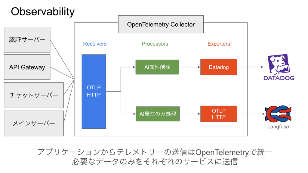 サービスとしてAPI機能を提供するバックエンド環境と、生成AIのオブザーバビリティ環境について紹介します。
