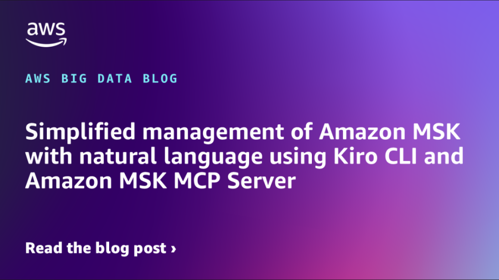 この記事では、Kiro CLI と Amazon MSK MCP Server を使用して、自然言語コマンドで Apache Kafka クラスターを管理する方法を紹介します。トピック管理、クラスターの健全性監視、設定の最適化など、複雑な Kafka 操作を対話形式で簡単に実行できるようになります。