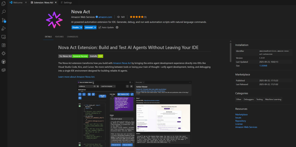 Nova Act IDE 拡張機能で AI エージェント開発を加速