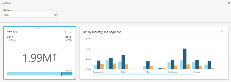 このサンプルでは、単一のパラメーターとコントロール UI で、ダッシュボード内の 2 つのビジュアルを同時に制御してみました。同様の手順を繰り返すことで、さらに多くのパラメーターやコントロール、フィルターを追加することができます。