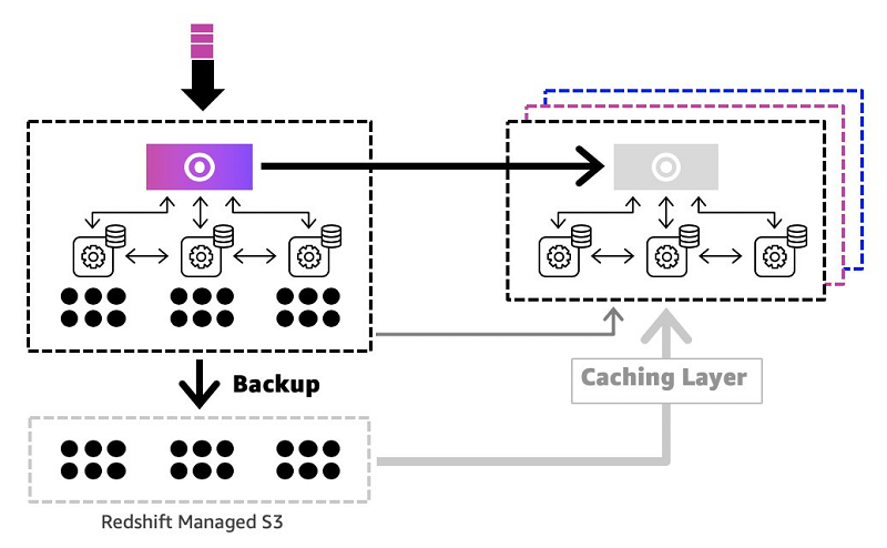 次の図は、同時実行スケーリングが高レベルでどのように機能するかを示しています。