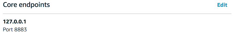 IoT デバイスは次に、エンドポイントとポート情報を使って、心拍数データが送信される AWS Greengrass コアへのセキュアな TLS 接続を開きます。AWS Greengrass コアの接続情報は以下のようになっているはずです。