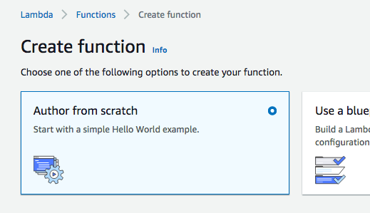 AWS Lambda コンソールで、[ Create Function] 、[Author from Scratch] の順にクリックします。