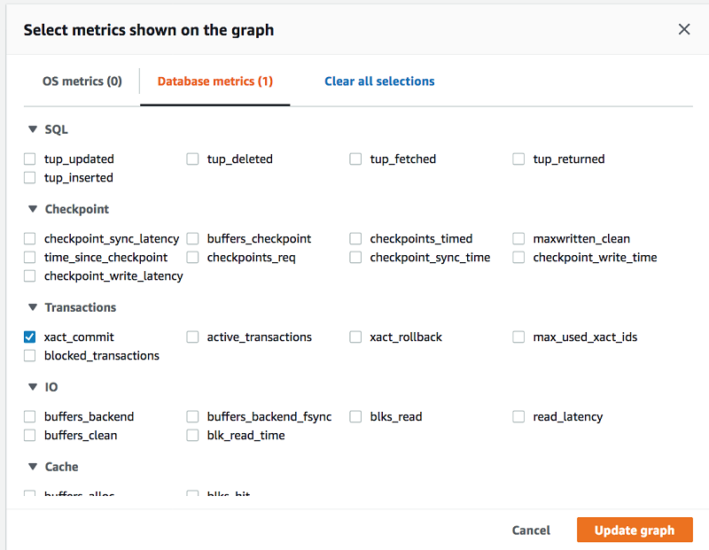 Name: PerformanceInsightsCounterMetrics を選択します。