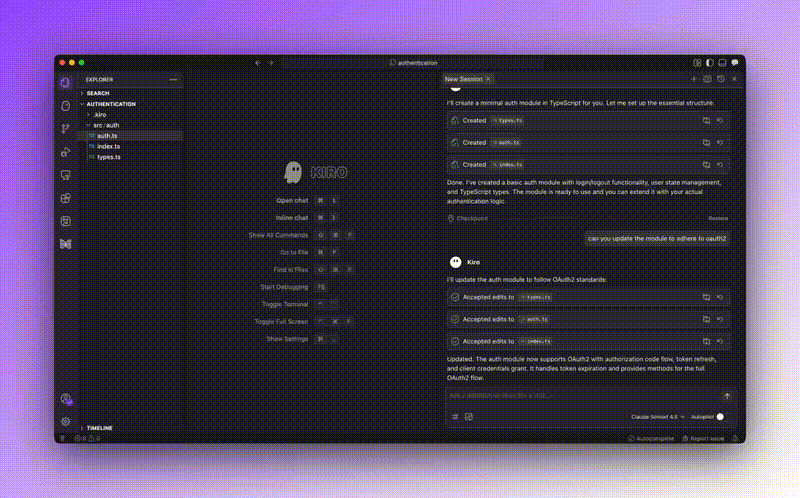 チェックポイント機能は、Kiro の仕様駆動開発ワークフローと自然に連携します。仕様を進めているとき、特定の要件を実装するために異なるアプローチを試したいことがあるかもしれません。チェックポイント機能は、その探索をリスクフリーにします。また、チェックポイントを使用して、仕様の主要なマイルストーンの完了をマークすることもできます。認証システムの実装が完了しましたか?それがチェックポイントです。データレイヤーが完成しましたか?これもまたチェックポイントです。これらのマーカーは、進捗の明確なマップを提供し、変更を加える必要がある場合に以前の段階を簡単に戻れるようにします。