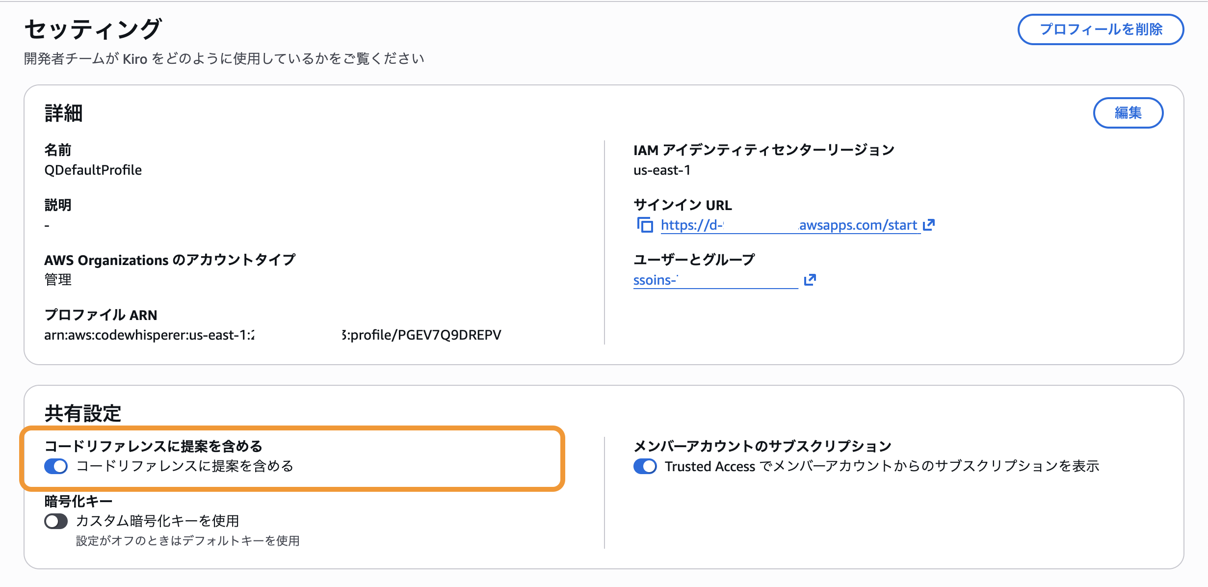 IAM Identity Center インスタンスのリージョンと、Kiro プロファイルのリージョンは異なっていても問題ありません。例えば、IAM Identity Center は東京リージョンを利用しつつ、Kiro プロファイルをバージニア北部リージョンで作成いただくことも可能です。そのため、既に IAM Identity Center をご利用中のお客様も、すぐに Kiro for enterprise を開始いただけます。