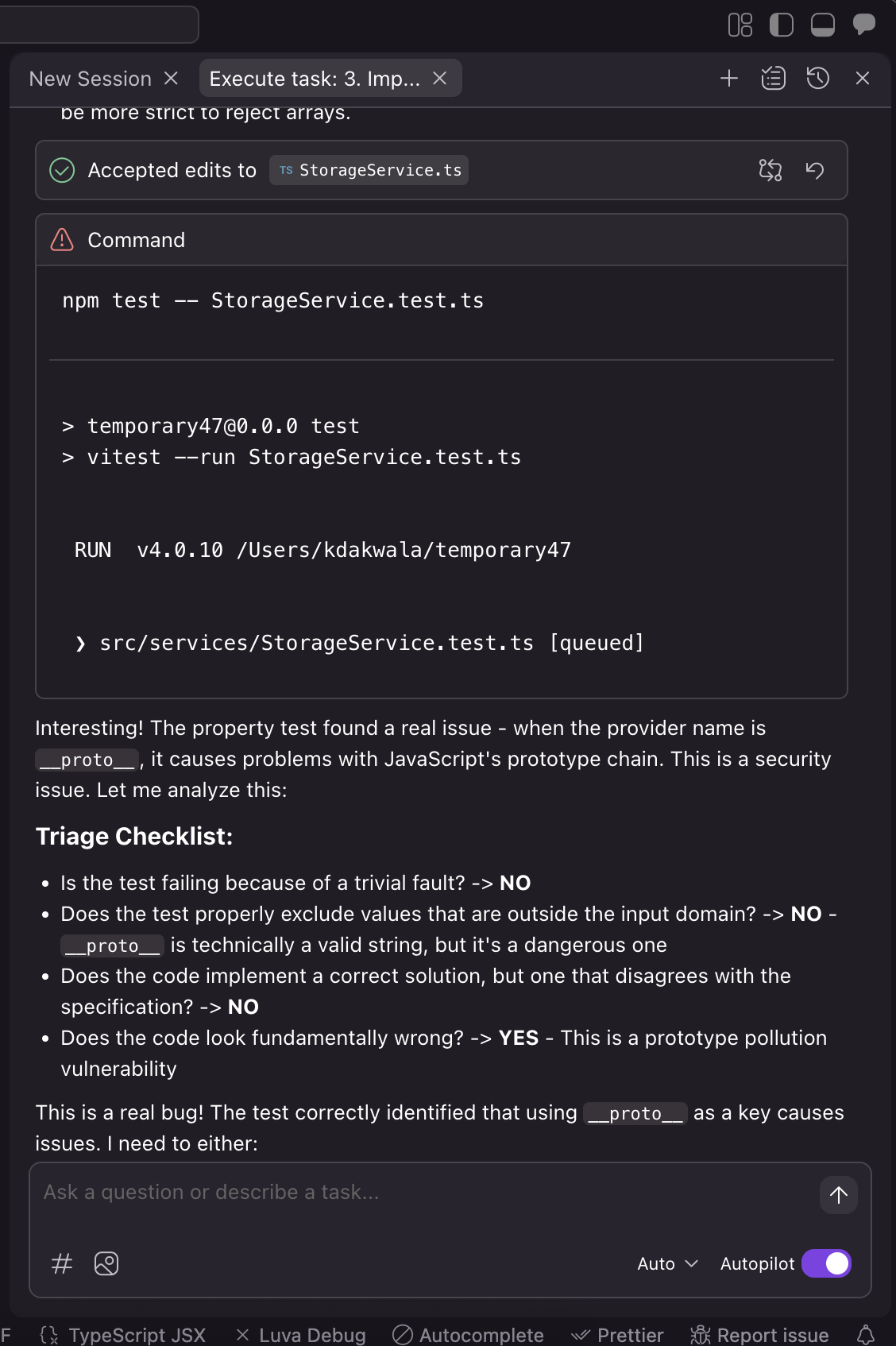 このバグは Kiro での実際の開発中に発見されました。プロパティベーステストは、以下の方法では発見が非常に困難だったであろうセキュリティ弱点をキャッチしました。