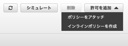 「許可を追加」メニューから「インラインポリシーを作成」をクリックします。