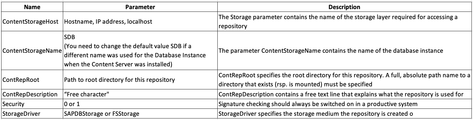 表1:SAP Content Serverパラメータ
