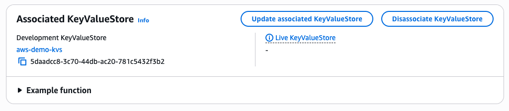 3. Associated KeyValueStore の下で、Associate existing KeyValueStore を選択し、先ほど作成した KeyValueStore を関連付けます。