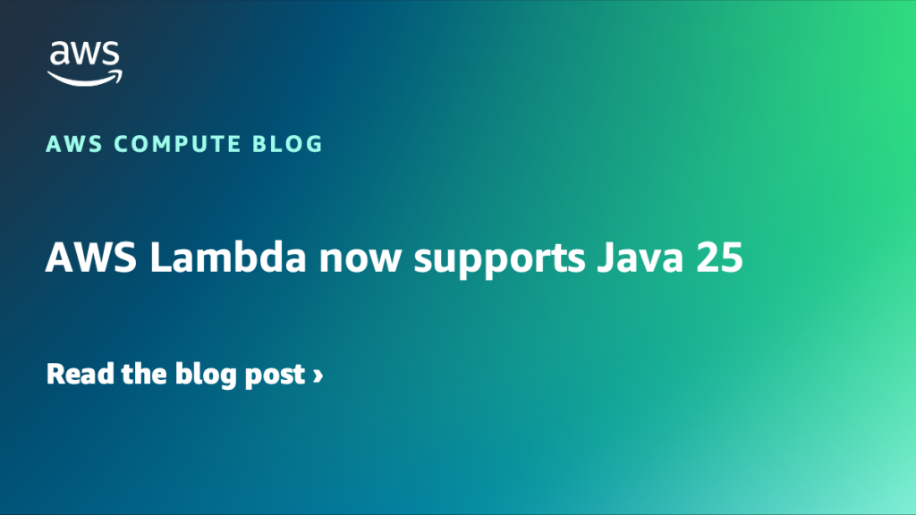 You can now develop AWS Lambda functions using Java 25 either as a managed runtime or using the container base image. This blog post highlights notable Java language features, Java Lambda runtime updates, and how you can use the new Java 25 runtime in your serverless applications.