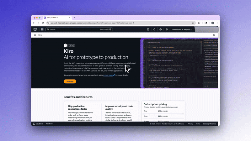 스펙 기반 AI 코딩 에이전트 Kiro 정식 출시 – IDE와 CLI에서 동시에 사용하세요!