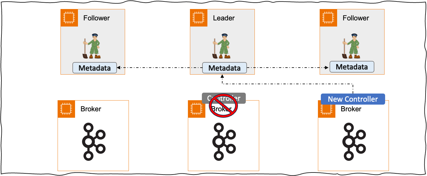 메타데이터에 대한 정보는 각 Controller와 브로커의 메모리에 캐시 및 스냅샷 방식으로 디스크에 저장합니다. 이러한 과정으로 인하여 브로커 복구 시 메타데이터의 정보를 디스크의 스냅샷에서 바로 읽어 더 빠른 복구 시간을 제공합니다. 이는 기존 Zookeeper 방식보다 메타데이터에 대한 복제 과정을 단순화시켜 Controller 또는 Broker 재기동시 더 빠른 복구를 지원합니다.