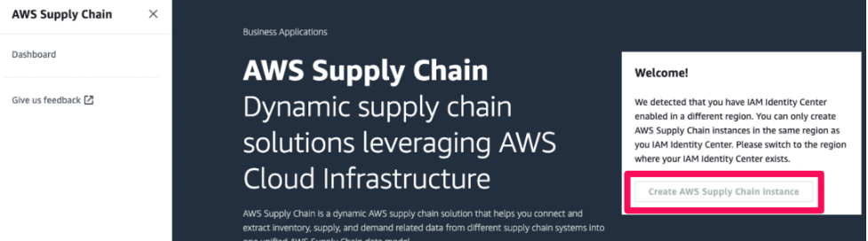 - AWS IAM Identity Center와 AWS Supply Chain은 동일한 리전에 배포가 되어야 합니다.