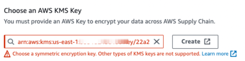 - 우측의 ‘Create’ 링크를 이용하여, 전용 KMS 키를 생성하는 것을 권장합니다.
