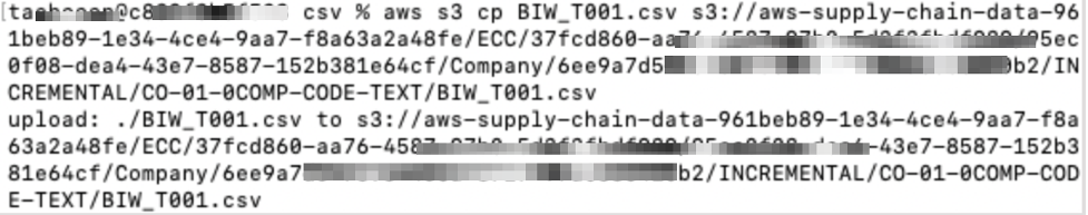 aws s3 cp BIW_T001.csv <제공되는 업데이트용 경로>/BIW_T001.csv