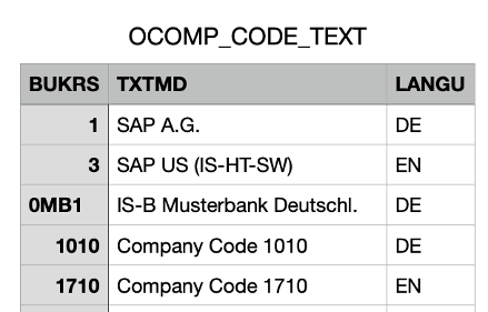 회사 → 회사 | 0COMP-CODE-TEXT | BIW_T001 |