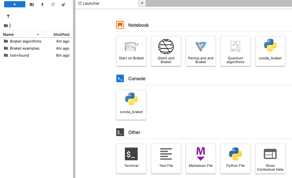 <그림 5. Amazon Braket 주피터 노트북 접속 화면>