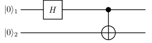 <그림 7. 2개의 큐비트를 이용하는 Bell state 회로>