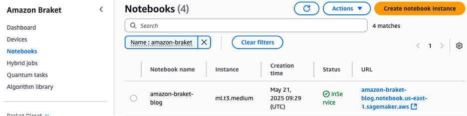 - High performance (ml.c5.xlarge) – 더 많은 메모리와 처리 능력이 필요한 복잡한 양자 알고리즘을 실행할 때 적합합니다.