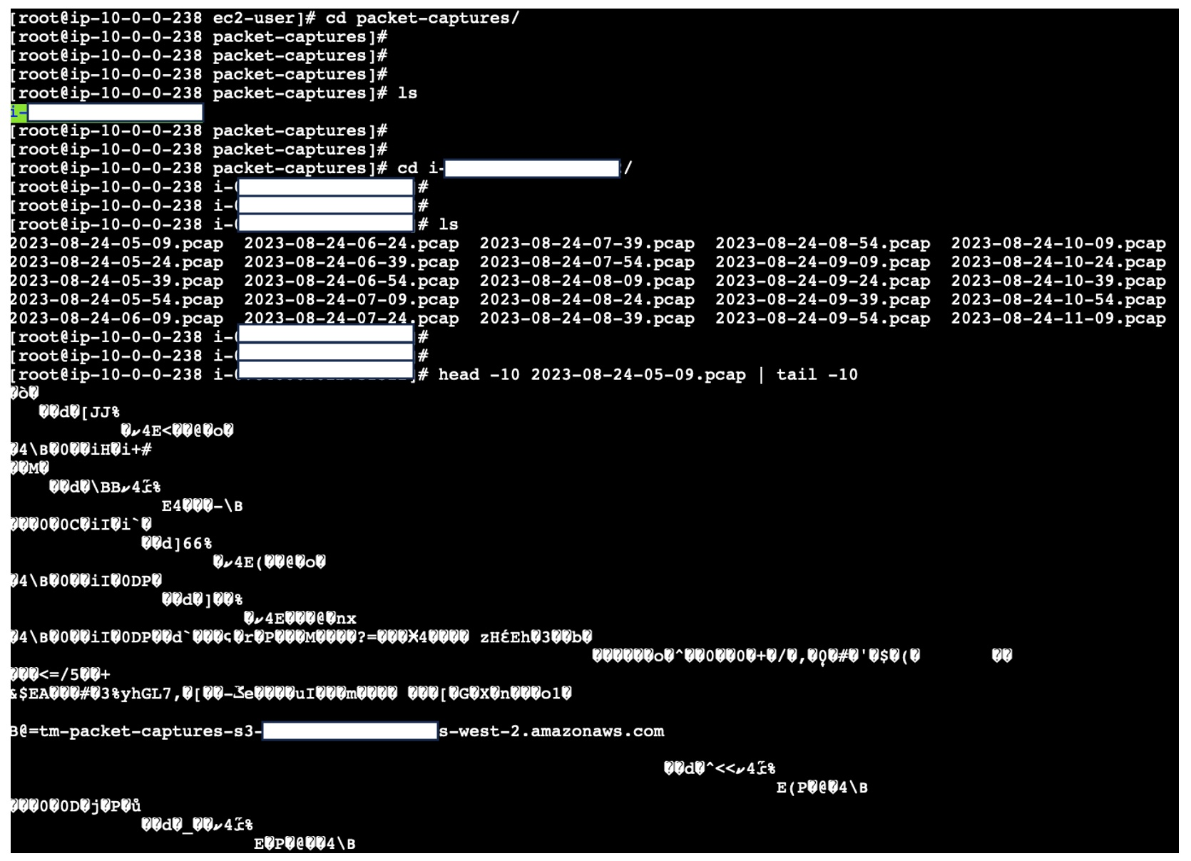그림 7: S3 마운트 포인트 디렉토리에 저장된 생성된 PCAP