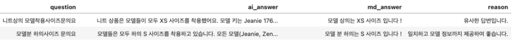 그림 9. AI 답변과 기존 담당자 답변 비교 예시