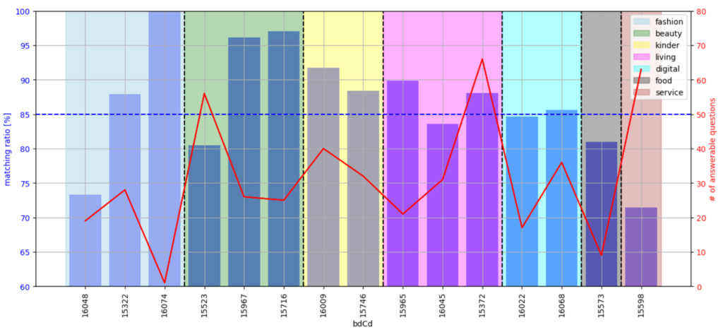 그림 10. 방송별 AI 답변과 담당자 답변 일치도 평가 결과 (bdCd: 방송코드)