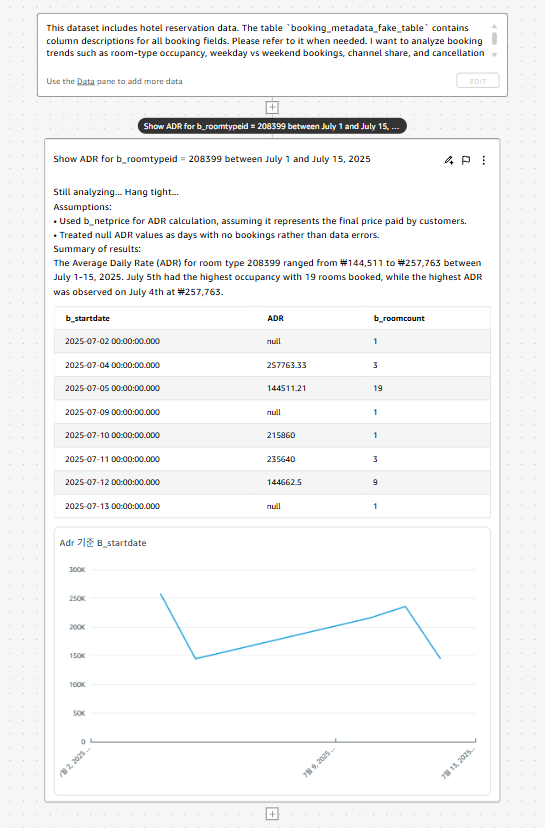 4. Amazon Q in QuickSight – 객실가 시나리오 분석