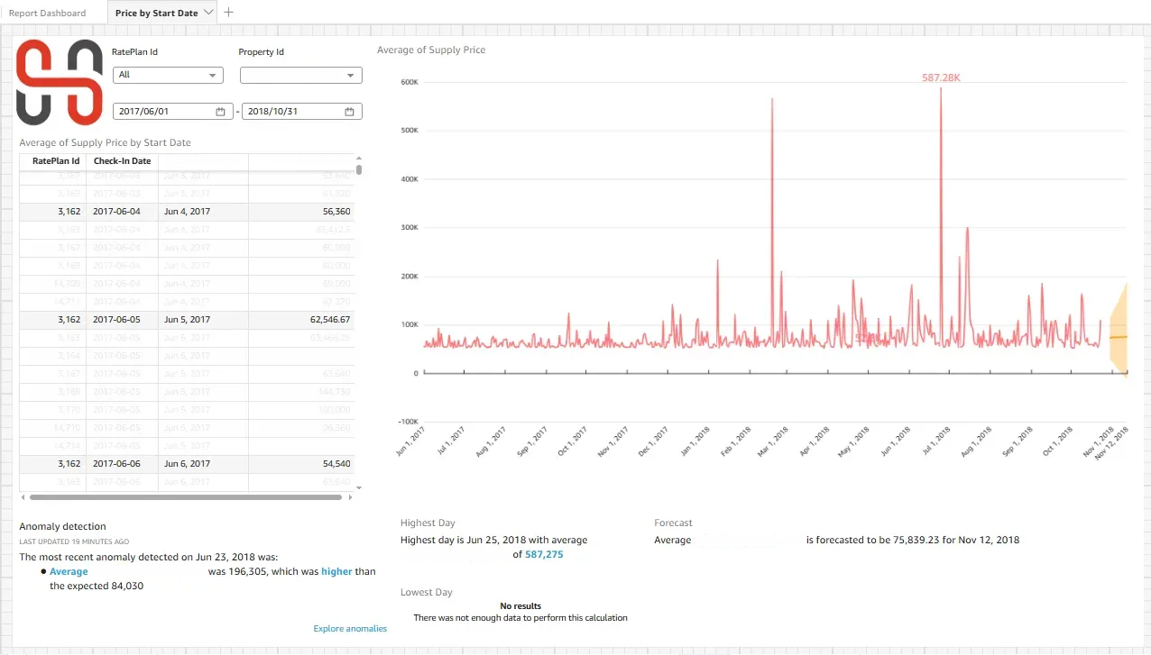 호텔스토리는 AWS Data Lab 프로그램에서 3주간 집중 스프린트를 진행하며 AWS 기술 지원을 받아 셀프 서비스 BI 대시보드에 대한 개념증명(PoC)을 구현했습니다. 객실 예약 데이터를 ETL 작업을 통해 QuickSight 서비스에 연결하고, 비즈니스 담당자 요구를 반영한 시각적 대시보드로 표현했습니다. 특히 Q in QuickSight를 활성화하여 데이터 전문 지식 없이도 복잡한 분석이 가능한 환경을 제공하였습니다.