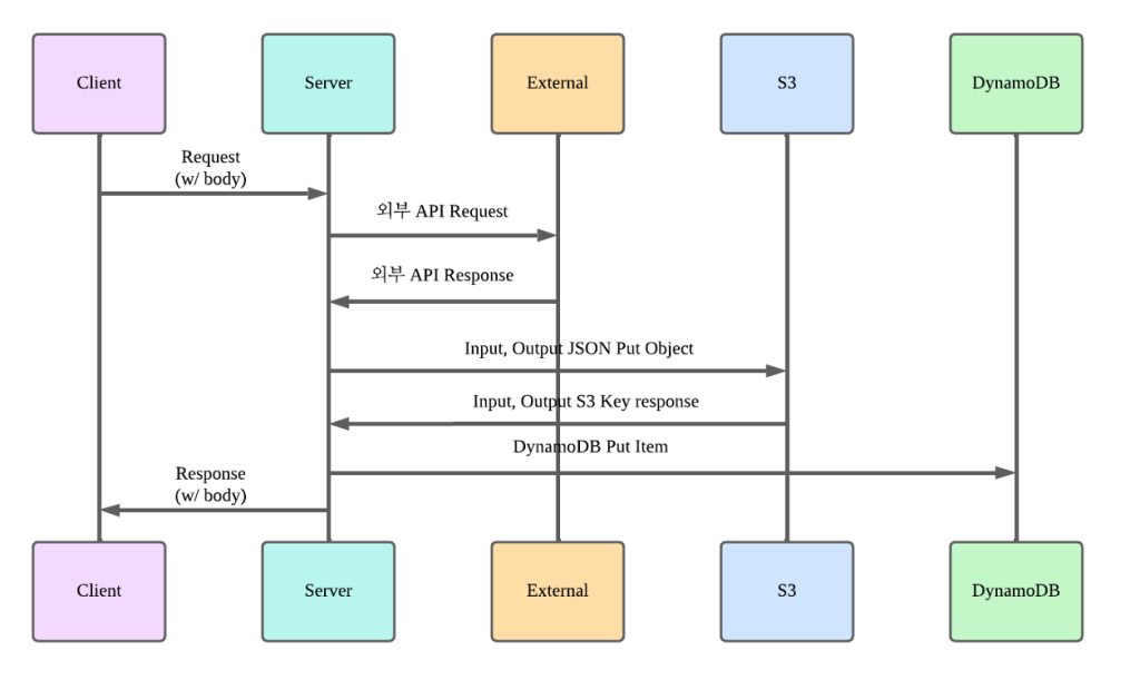 JSON 데이터의 저장 위치를 DynamoDB와 S3 중 고민 했었습니다. 우선 DynamoDB 항목(Item)의 최대 400KB 크기 제약을 확인했고, 둘째로 외부 연계 입력/출력 데이터의 크기는 언제든 400KB를 초과할 수 있었고, 셋째로 그렇지 않더라도 DynamoDB의 WCU (Write capacity unit)/RCU(Read capacity unit)와 S3의 PUT/GET API 비용을 고려했을 때 비용적 이점도 함께 활용하기 위해 S3로 결정했습니다.