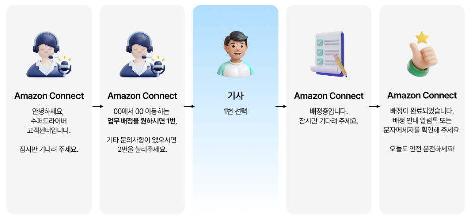 이렇게 첫 인바운드 솔루션을 성공적으로 구축하고 기사님들이 안정적으로 서비스를 이용하는 것을 확인하며, Amazon Connect를 통한 디지털 콜센터 운영에 대한 확신을 갖게 되었습니다. 이에 더 복잡한 시나리오에 도전하기로 했고, AI Agent를 활용한 아웃바운드 자동화 구축에 나섰습니다. 해당 시나리오는 바로 아래 섹션에서 이어집니다.