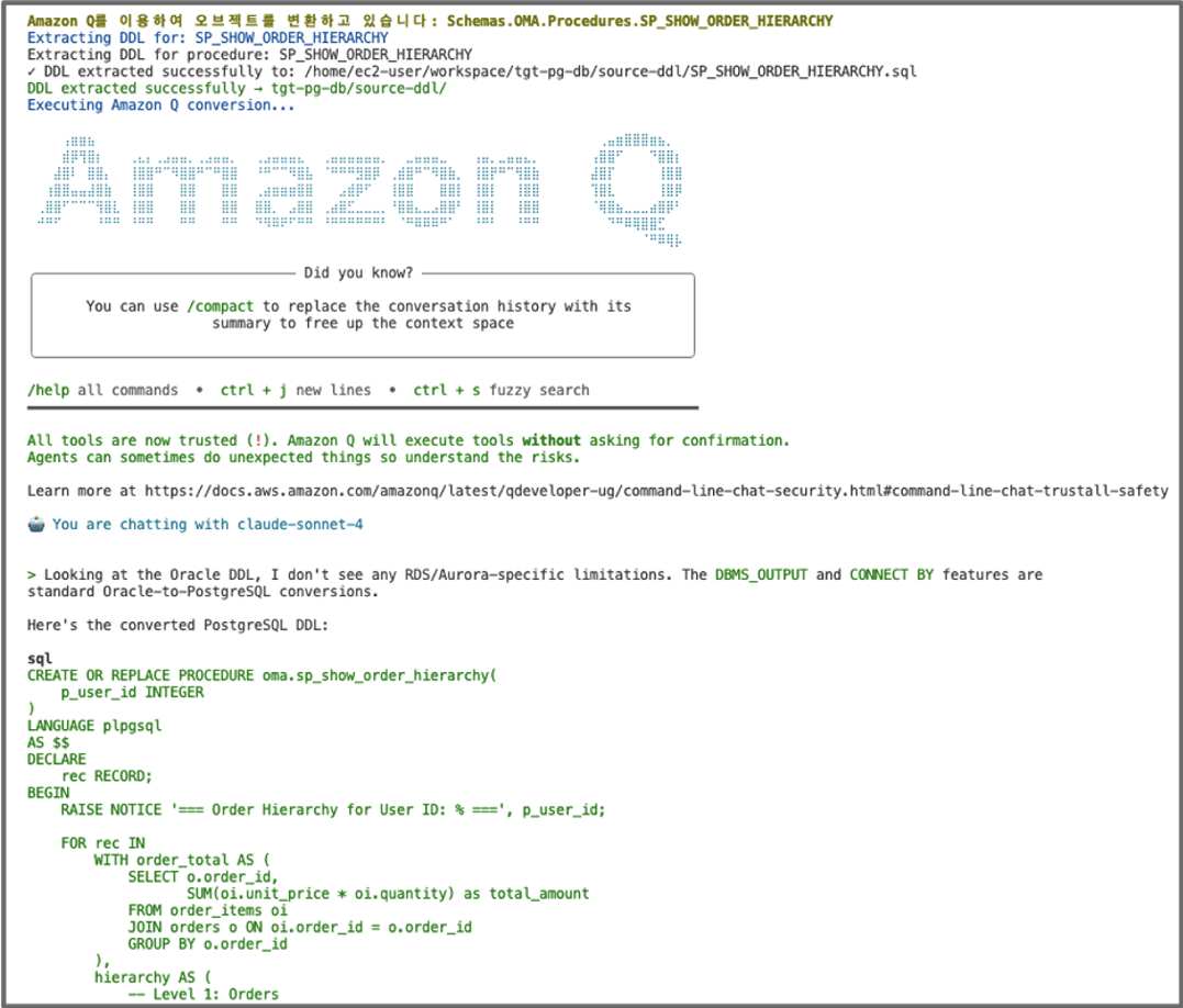 [그림3. Amazon Q Developer를 통한 데이터베이스 스키마 추가 변환]