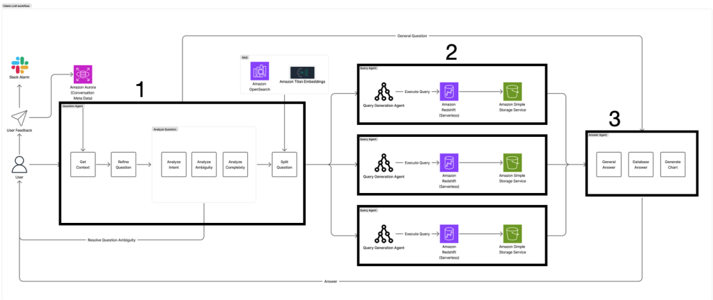 1부에서 살펴본 클레어의 비즈니스 가치와 전체 아키텍처를 바탕으로, 이번 편에서는 각 컴포넌트의 기술적 구현 방식과 최적화 전략을 자세히 공유하고자 합니다. 1부 다시보기 : 아이지에이웍스 AI 에이전트 클레어: Amazon Bedrock 기반 Text-to-SQL/Chart 에이전트로 이룬 데이터 분석 혁신 멀티 에이전트 구현 1부에서 설명한대로, 클레어의 개별 Agent들의 흐름은 다음과 같습니다. Question Agent(질문 분석 및 정제, 분할) → Query […]