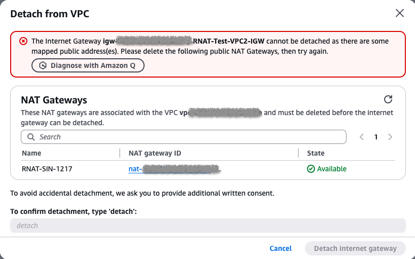 그리고 Regional NATGW 가 이미 존재하는 VPC 는 IGW 를 Detach 할 수 없습니다.