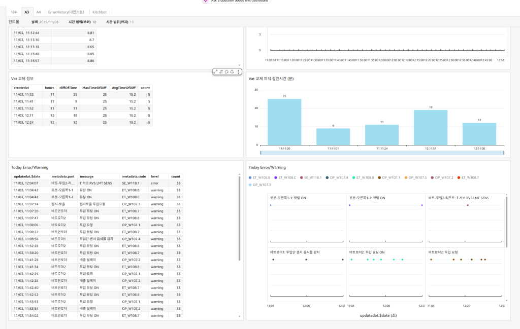 • ‘설비당 평균 조리 시간’, ‘시간당 에러 발생률’ 등 핵심 성과 지표(KPI)를 주기적으로 계산하고 임계값(Threshold)을 모니터링해야 했습니다.