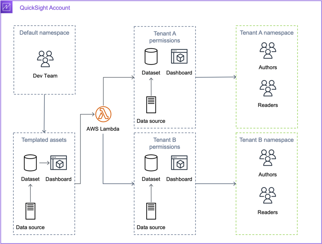 통합 가시성 관점에서 네임스페이스는 테넌트 수준에서 QuickSight 사용량 모니터링을 간소화하여 조직이 고객에 대한 요금 부과를 추적하기 용이합니다.