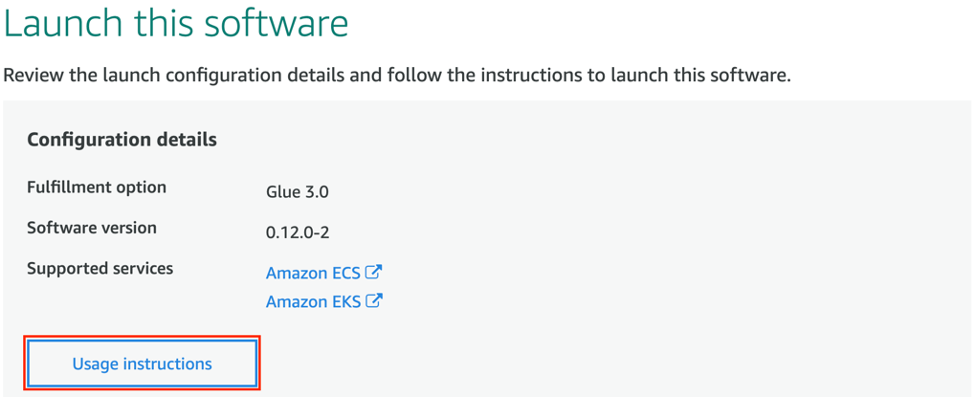 Fulfillment option에서 “Glue 3.0”을 선택하고, “Continue to Launch”를 선택합니다.