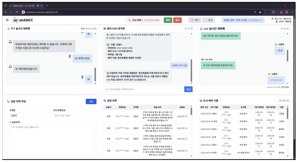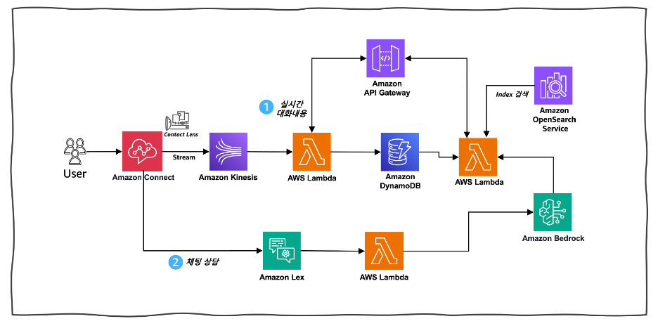 - 실시간 표시: Amazon API Gateway를 통해 브라우저 기반 상담원 화면에 실시간으로 전송