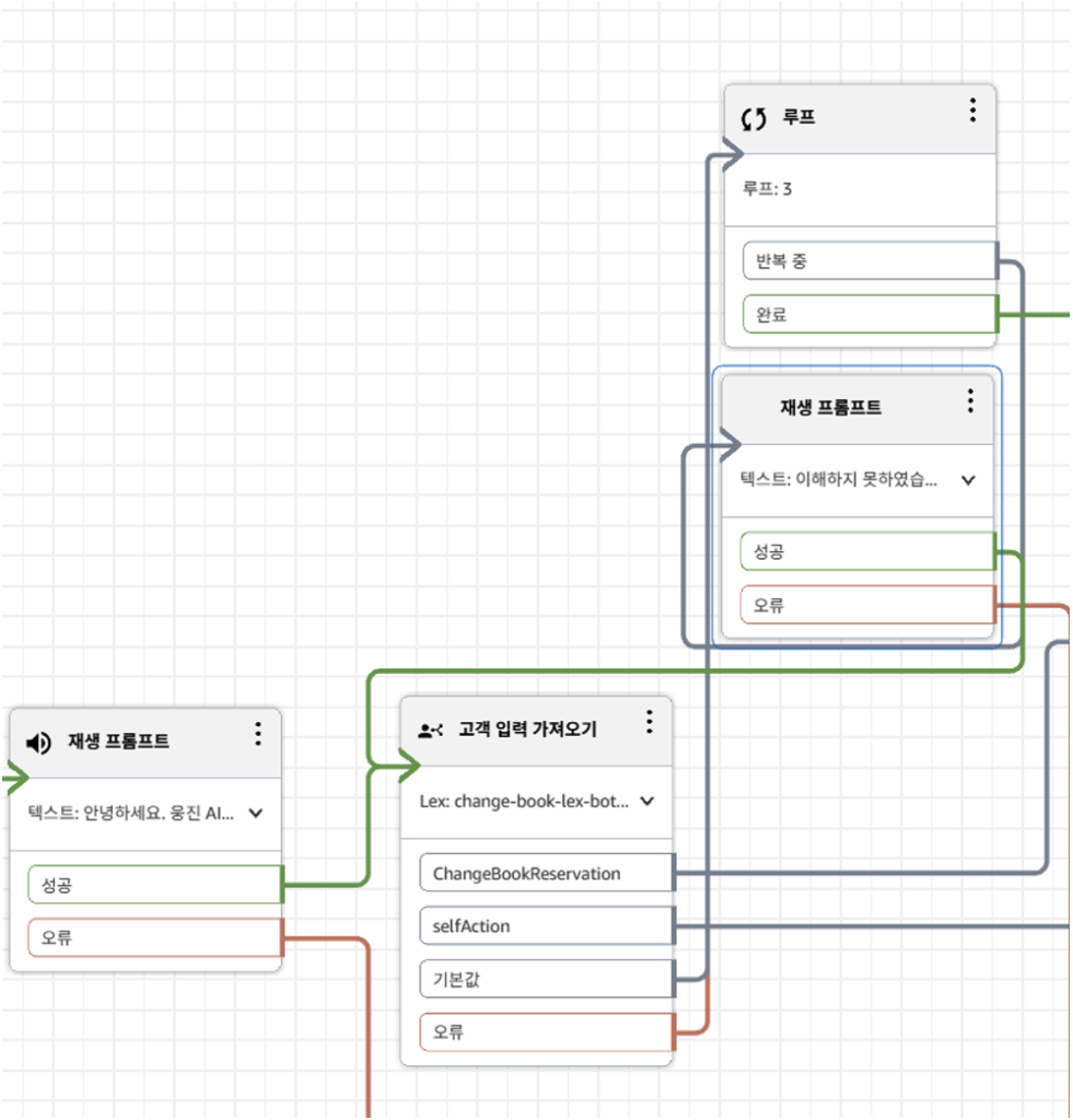 고객이 “예약 변경하고 싶어요”라고 말하면, 플로우는 예약 변경 비즈니스 로직을 실행합니다. 필요한 정보들을 추가 수집하고 백엔드 API를 호출하여 실제 예약 변경 작업을 수행합니다.