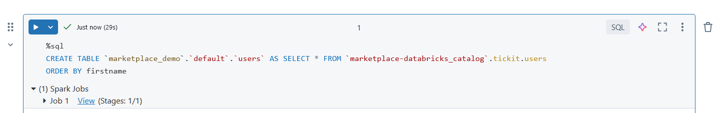 In this simple query, a Spark job is run that effectively replicates the users table in a local Databricks table.