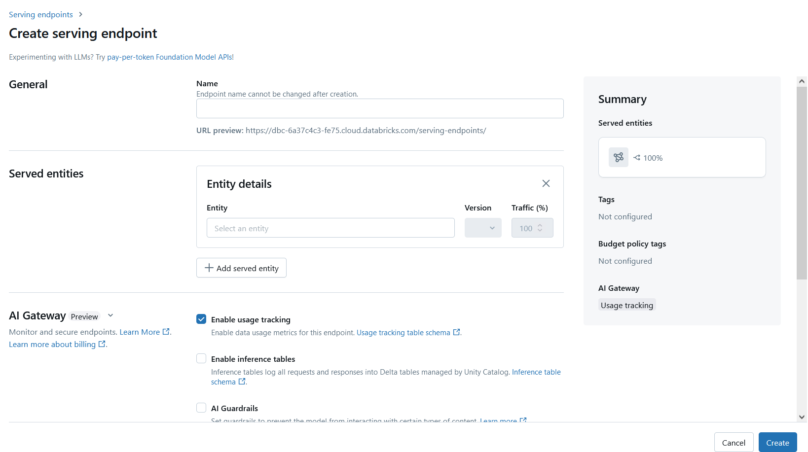 Once you’re done with these requirements, you’re ready to configure your Serving Endpoint integrated with Amazon Bedrock Foundation Models for embedding.