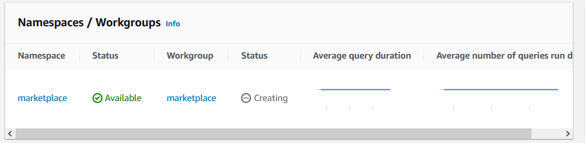 Your Workgroup and Namespace will enter Creating status and it will take a few minutes to finish provisioning.