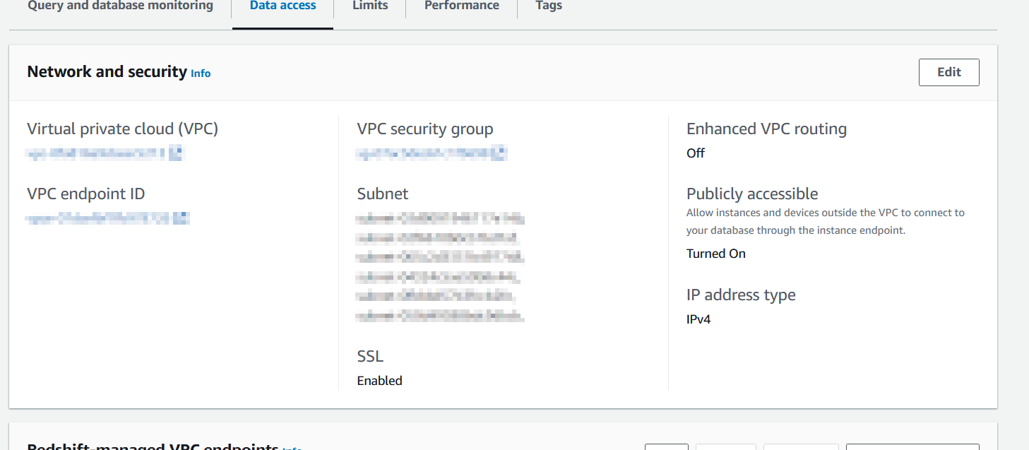 Note that for the purposes of this tutorial, we will need to enable Public Access on your Amazon Redshift service for Databricks to be able to connect to it. In production environments, this is not advisable and more secure options such as VPC peering and other forms of private access are recommended.