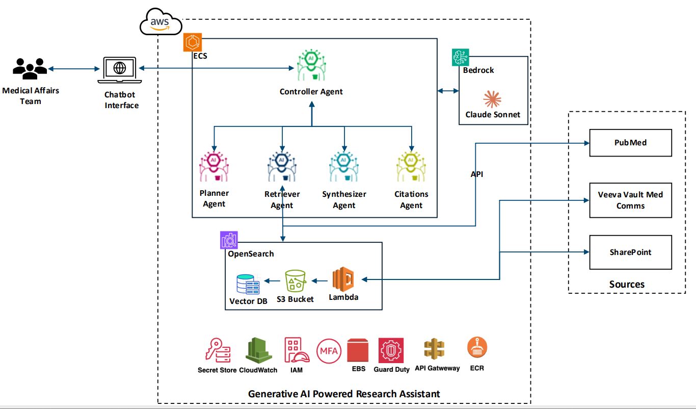 Built on advanced generative AI and hosted on scalable AWS infrastructure, this solution empowers Medical Affairs teams to efficiently navigate complex scientific literature and regulatory documentation. By automating data synthesis, summarization, and citation generation, it reduces manual effort and accelerates strategic planning. The assistant supports natural language queries, adapts to evolving healthcare needs, and ensures compliance with scientific and regulatory standards - making it a high-impact tool for life sciences organizations.