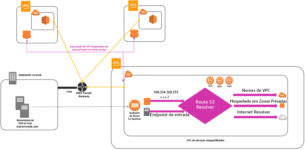 Gerenciamento de DNS centralizado da nuvem híbrida com o Amazon Route 53 e o AWS Transit Gateway